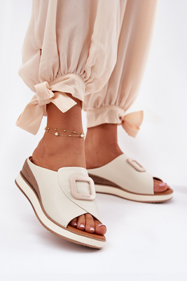 Klapki Damskie Skóra Naturalna Koturn Jasnobeżowe Artiker 56C2145