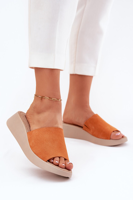Damskie Klapki Na Koturnie Zamszowe Pomarańczowe Panto Fino RR267039