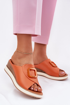 Klapki Damskie Skóra Naturalna Koturn Pomarańczowe Artiker 56C2149