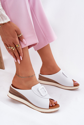 Klapki Damskie Skóra Naturalna Koturn Białe Artiker 56C2144