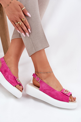 Damskie Sandały Zamszowe Platforma Złoty Detal Fuksja S.Barski GR51-604