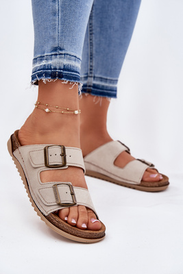 Damskie Klapki Profilaktyczne Z Klamrami Beżowe Inblu AA000068