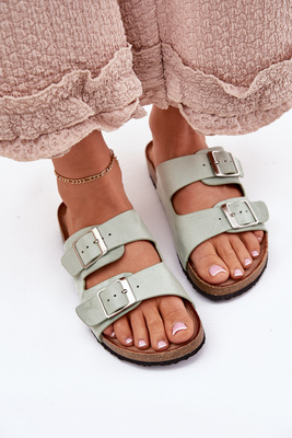 Damskie Klapki Korkowa Platforma Klamry Miętowe Evisolla
