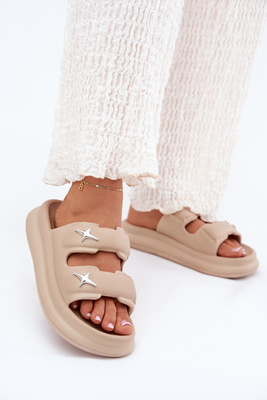 Damskie Klapki Lekkie Piankowe Na Platformie Ciemnobeżowe Falowena