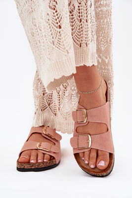 Klapki Ze Złotymi Klamrami Korkowa Platforma Różowe Lisavionea