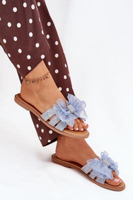 Damskie Klapki Płaskie Tiulowa Kokardka Jeansowe Tanira