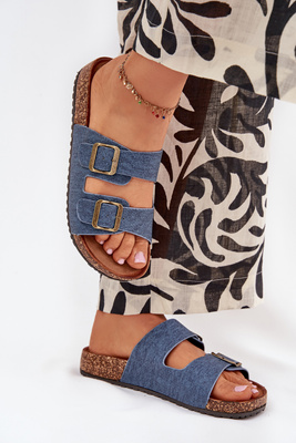 Klapki Z Klamrami Damskie Na Korkowej Platformie Ciemny Jeans Vesina
