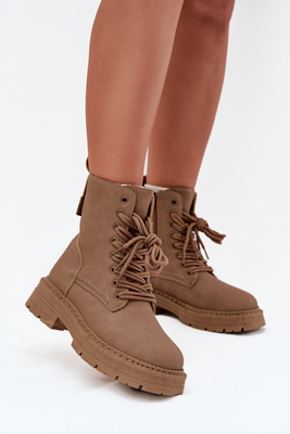 Damskie Workery Botki Na Zamek Ciemnobeżowe Tirina