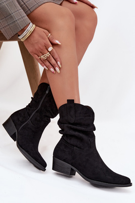 Damskie Botki Niski Obcas Marszczenie Zamek Czarne Adena
