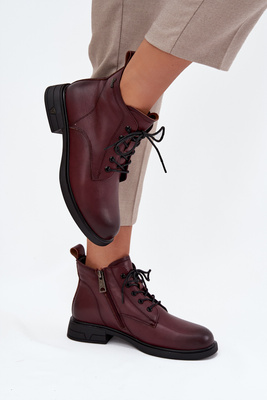 Botki Damskie Ocieplane Skóra Naturalna Niski Obcas Bordowe Vinceza 39953