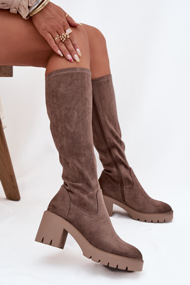 Damskie Kozaki Obcas Słupek Eko Zamszowe Przed Kolano Ciemnobeżowe Vinceza 58332