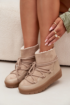 Damskie Śniegowce Z Wiązaniem Beżowe Rebekah