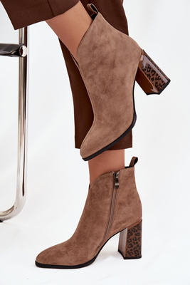 Damskie Botki Skóra Naturalna Obcas Słupek Z Panterką Beżowe Zivella