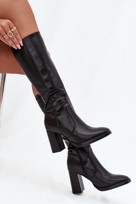 Damskie Kozaki Ocieplane Obcas Słupek Eko Skóra Czarne Lyvella