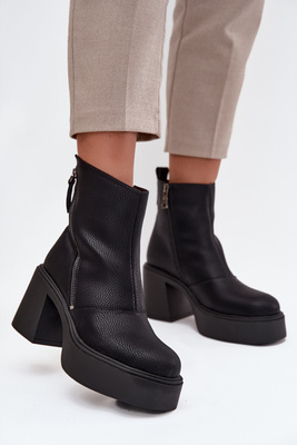 Botki Damskie Skóra Naturalna Ocieplane Słupek Platforma Czarne Vinceza 66831