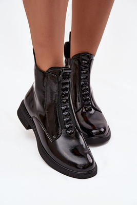 Damskie Botki Z Naturalnej Skóry Lakierowanej Czarne D&A MR52-108