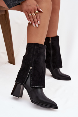 Damskie Botki Skóra Naturalna Ocieplane Słupek Wywinięta Cholewka Czarne Maciejka K7206-01
