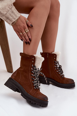 Damskie Botki Trapery Eko Skórzane Camel Bellora