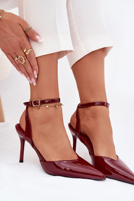 Szpilki Damskie Lakierowane Odkryta Pięta Bordowe Laretta