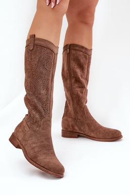 Kozaki Eko Skórzane Z Marszczeniem Obcas Słupek Platforma Ocieplane Brązowe Beridra