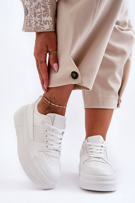 Buty Sportowe Damskie Skóra Masywna Platforma Białe Belisso EV-222