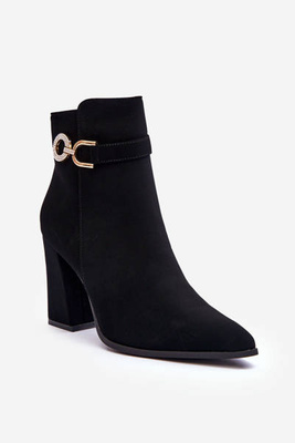 Damskie Ocieplane Botki Obcas Słupek Złota Ozdoba Czarne Ysolde