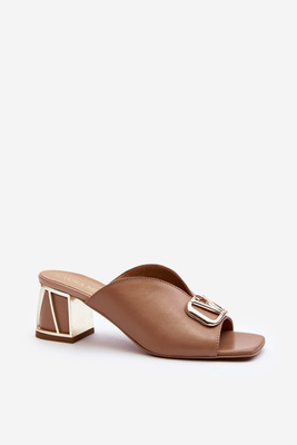 Klapki Damskie Eleganckie Na Obcasie Beżowe Laura Messi 2771