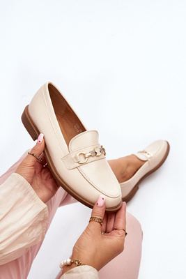 Mokasyny Damskie Eko Skóra Płaski Obcas Beżowe Vimedia T591