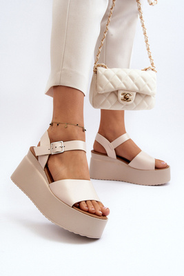 Sandały Damskie Na Koturnie Beżowe PS18