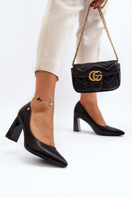 Czółenka Słupek Eko Skóra Czarne Giseleni 62106