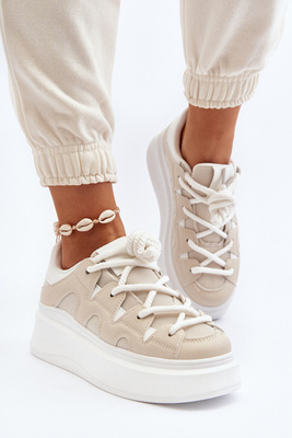 Sneakersy Damskie Eko Skóra Grube Sznurowanie Beżowe Vinali 55-22