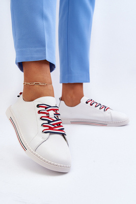 Tenisówki Damskie Skóra Białe Litzy 87967