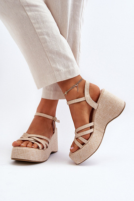 Damskie Sandały Na Platformie I Koturnie Jasnobeżowe Oporia FF-20