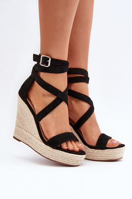 Sandały Koturn Z Plecionką Czarne Salthe H8-688