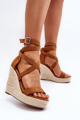 Sandały Koturn Z Plecionką Camel Salthe H8-688