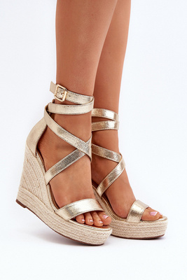Sandały Koturn Z Plecionką Złote Salthe H8-688