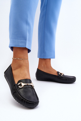 Mokasyny Damskie Eko Skórzane Klasyczne Czarne Demese NN22-991