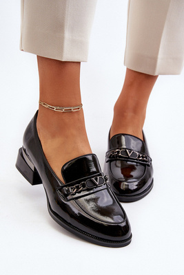 Półbuty Lakierowane Damskie Niski Obcas Czarne Albreide 58299