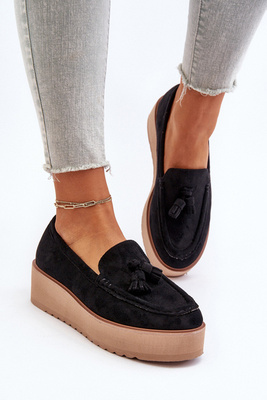 Mokasyny Platforma Frędzle Czarne Mialani T599P