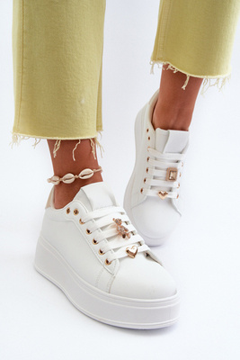 Sneakersy Eko Skóra Platforma Przypinki Damskie Białe Cavisa C2168