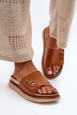 Klapki Skórzane Damskie Na Platformie Brązowe Zazoo 50101