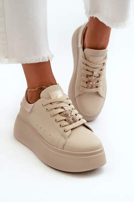 Sneakersy Na Platformie Z Misiem Damskie Skórzane Beżowe Vinceza 66641