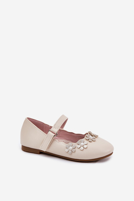 Balerinki Dziecięce Eko Skórzane Z Kwiatkami Beżowe Landgia
