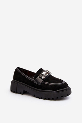 Mokasyny Damskie Platforma Kamienie Czarne Elonore DS509-5