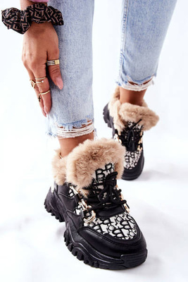 Damskie Ocieplane Sportowe Buty Czarne Heart Beats