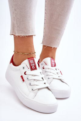 Tenisówki Skórzane Wiązane Big Star Biało-Czerwone EE274311