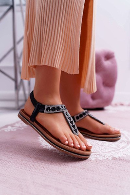 Sandały Damskie Płaskie Wsuwane Z Cyrkoniami Czarne Mabellena