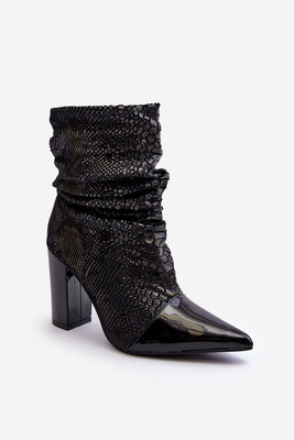 Botki Marszczone Wężowe Obcas Czarne Casima WS031