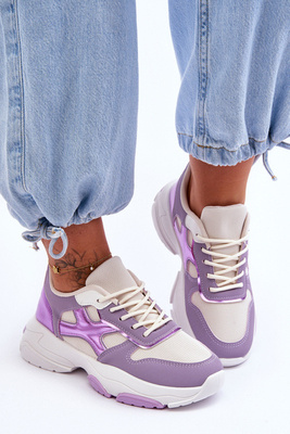 Buty Sportowe Damskie Klasyczne Biało-Fioletowe Night Trip L22-2