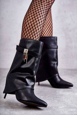 Kozaki Klasyczne Skóra Słupek Czarne Kornelli